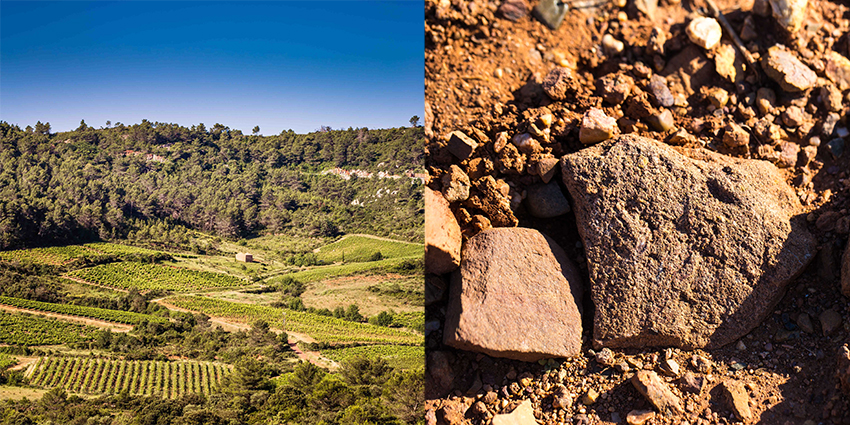 Ainsi, les neuf vignerons participant à ce Terroir Tour s’attacheront à rendre plus lisibles et explicites les paysages traversés. « Ils pourront déguster mes vins dans les vignes, les pieds posés sur le calcaire mais avec déjà, les yeux qui touchent le schiste presque en face avec un panorama époustouflant sur ces paysages sauvages entre mer Méditerranée et chaîne des Pyrénées », annonce Luc Bettoni qui participe à l’étape 1 du parcours. Pour ce vigneron installé sur 15 ha pour une production de 50 000 bouteilles en Agriculture biologique et en biodynamie (domaine Les Eminades), « les beaux vins sont forcément issus de beaux terroirs ». Poète éclairé, Luc Bettoni offrira une lecture gourmande des calcaires du Jurassique avec sa cuvée Sortilège (70% Syrah, 25% Mourvèdre et 5% Grenache), à déguster les pieds dans les vignes. « A la différence des schistes qui donnent intrinsèquement des vins extrêmement fins et délicats, la marque de fabrique de ce terroir, ce sont des vins blancs et rouges avec beaucoup de minéralité crayeuse et de la fraîcheur. Quand on voit les vignes, c’est un tapis de cailloux mais nous sommes sur des argiles gonflantes : elles se chargent en eau quand il pleut pour restituer ensuite cette eau par transpiration, limitant ainsi le stress hydrique pour la vigne. »