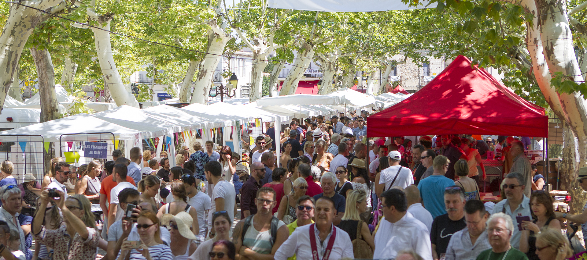 Une jolie brochette de vignerons à découvrir sur la promenade du village ombragée de platanes (et équipée de brumisateurs), à l’occasion de cette grande fête familiale : 100 mètres de longueur de stands, une quarantaine de vignerons, une quinzaine d’artisans de bouche, un espace jeux pour les enfants, un espace-guinguette sur la place avec fanions, parasols, foodtrucks et depuis l’an passé, un espace drive où poser ses cartons de vins pour venir les récupérer une fois le tour de foire terminé.