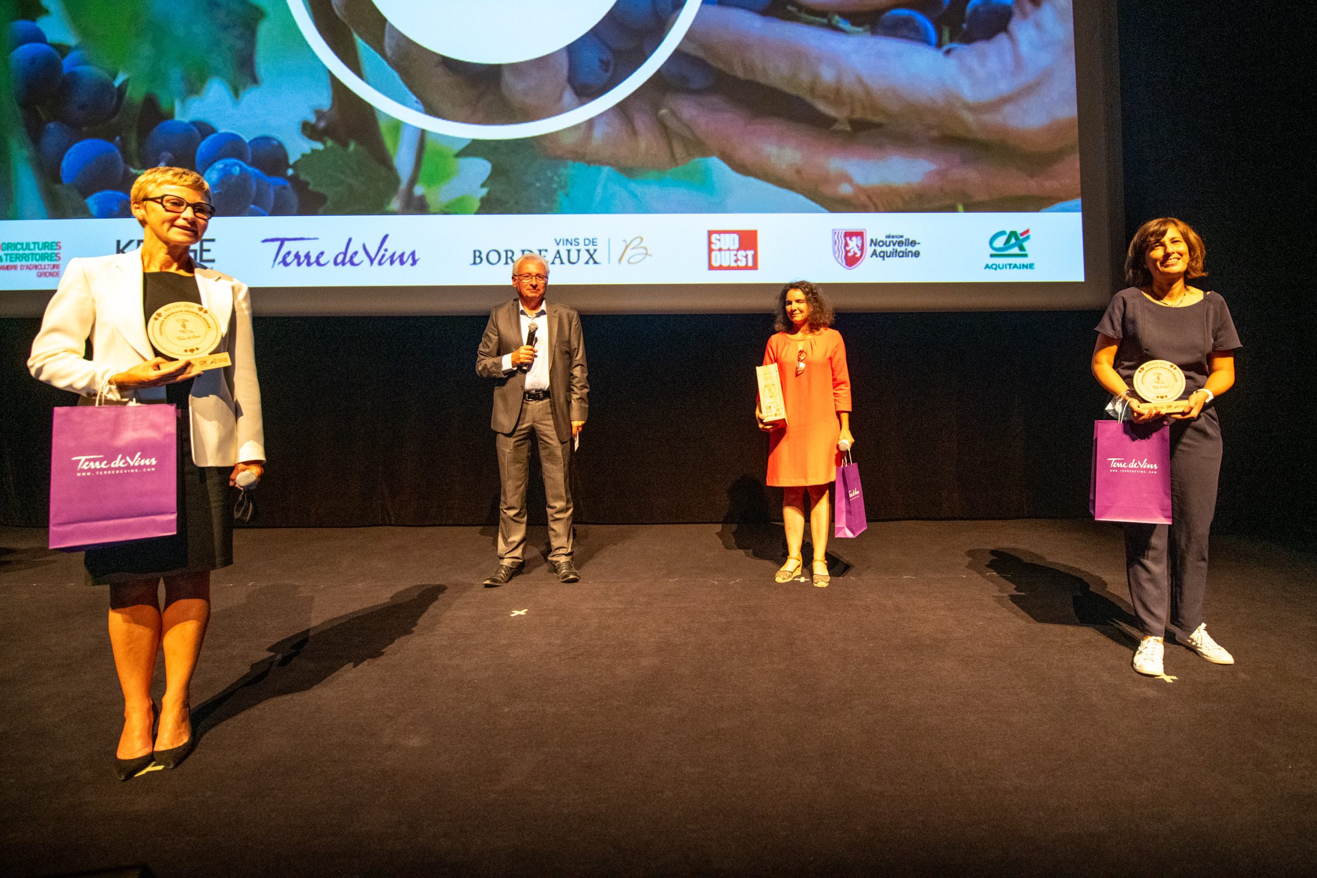 Parmi le public : Nathalie Delattre, sénatrice de la Gironde, ou encore Sylvie Cazes, présidente de la fondation gérant la Cité du Vin, hôte de la soirée. Sur scène, pas de rodomontades ou de leçons de morale. L’esprit est plutôt aux échanges chaleureux, aux partages d’expérience, à la reconnaissance des avancées. Au cours d’une cérémonie toujours aussi vivante et rythmée, avec quelques rires, Lydia Héraud, conseillère régionale de Nouvelle-Aquitaine, Jean-Louis Dubourg, président de la Chambre d’agriculture de la Gironde, Olivier Constantin, directeur général du Crédit Agricole Aquitaine, Jérémy Cukierman, directeur de Kedge Wine School, et François-Thomas Bon, président de la commission technique du CIVB, se sont succédés pour présenter les cinq grandes catégories des prix : “vivre ensemble”, “nature et respect”, “innovation et avenir”, “faune et flore” et “empreinte”.
