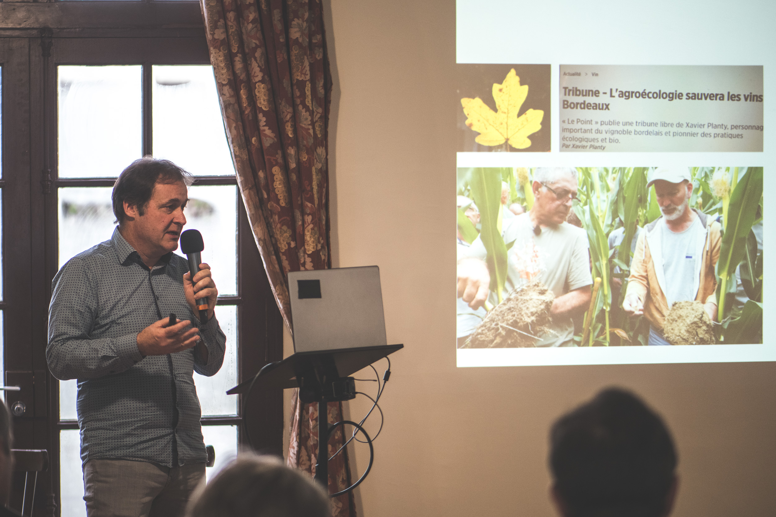 “C’est une journée de conférences réservée aux professionnels, le Château Latour reçoit une centaine personnes pour échanger autour de thèmes comme l’agro-foresterie, l’implantation de couverts végétaux, la vie des sols, l’intégration de stagiaires, etc., tous les sujets qui sont essentiels aujourd’hui à notre métier de vigneron”, explique Hélène Génin, la directrice technique du Château Latour. L’embryon de cette démarche vient des “Vignerons du Vivant”, cette toute jeune association de propriétaires notamment décidés à recruter des stagiaires au sein d’une autre association, les Apprentis d’Auteuil.