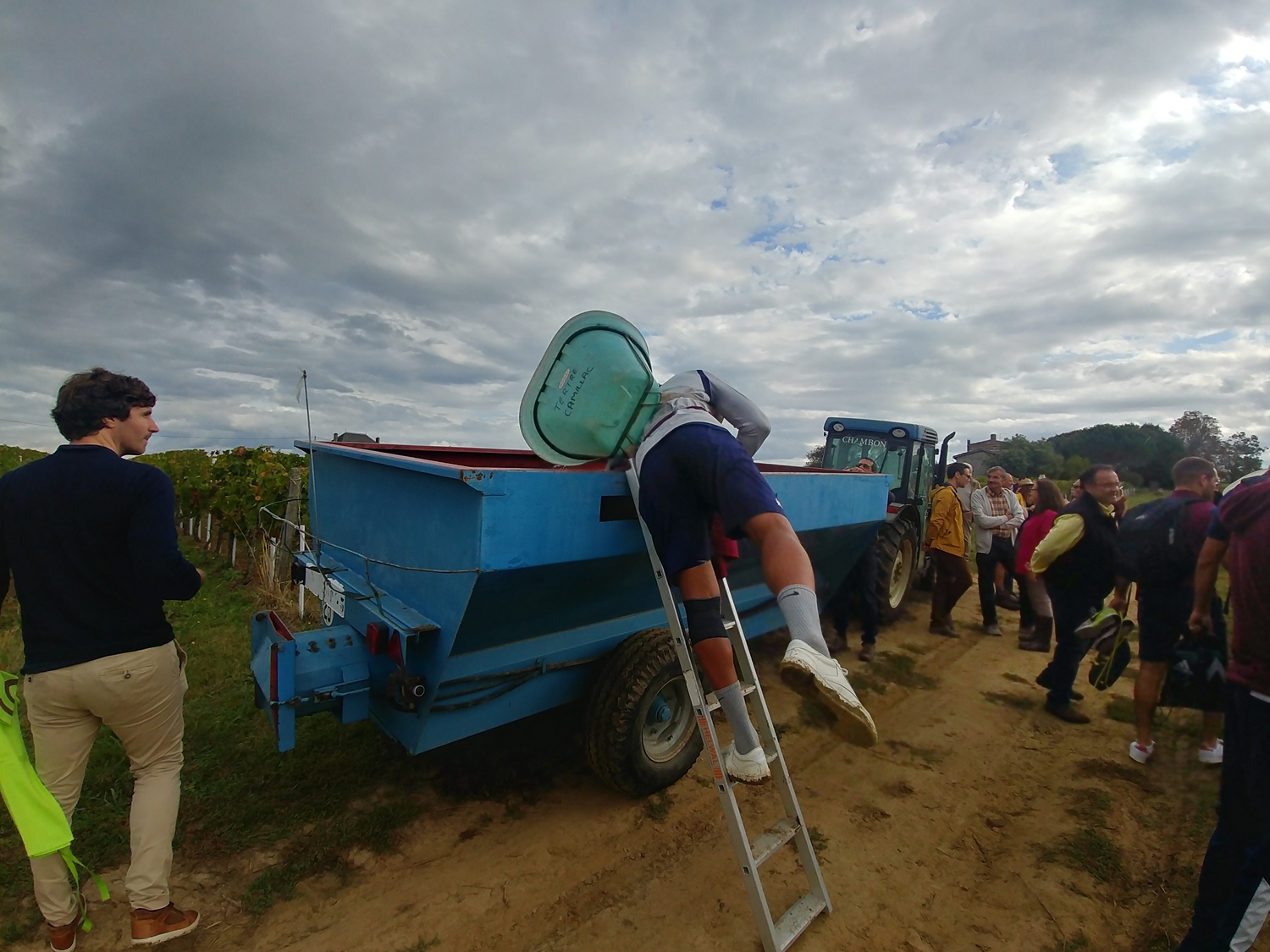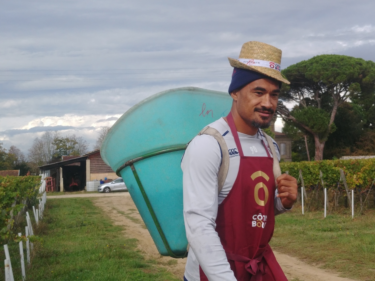 “C’est bien la première fois que nous aurons plus de porteurs que de coupeurs pour les vendanges, mais on devrait pouvoir s’arranger!” s’amusait hier Rémy Eymas, à la tête du château Gros Moulin, propriété familiale qui accueillait en ce mardi matin dans ses vignes une équipe de vendangeurs peu ordinaire. Une cinquantaine de joueurs de l’Union Bordeaux-Bègles, équipe première et espoirs réunis, étaient là, surmotivés, pour ramasser les baies d’une petite parcelle de moins d’un hectare plantée en malbec, cépage emblématique de l’AOC. Ce rendez-vous, désormais devenu tradition, est réitéré sans faute millésime après millésime. Mais pour la première fois en revanche, les rugbymen ont prolongé leur visite en terres bourquaises par un entraînement ouvert au public hier après-midi.