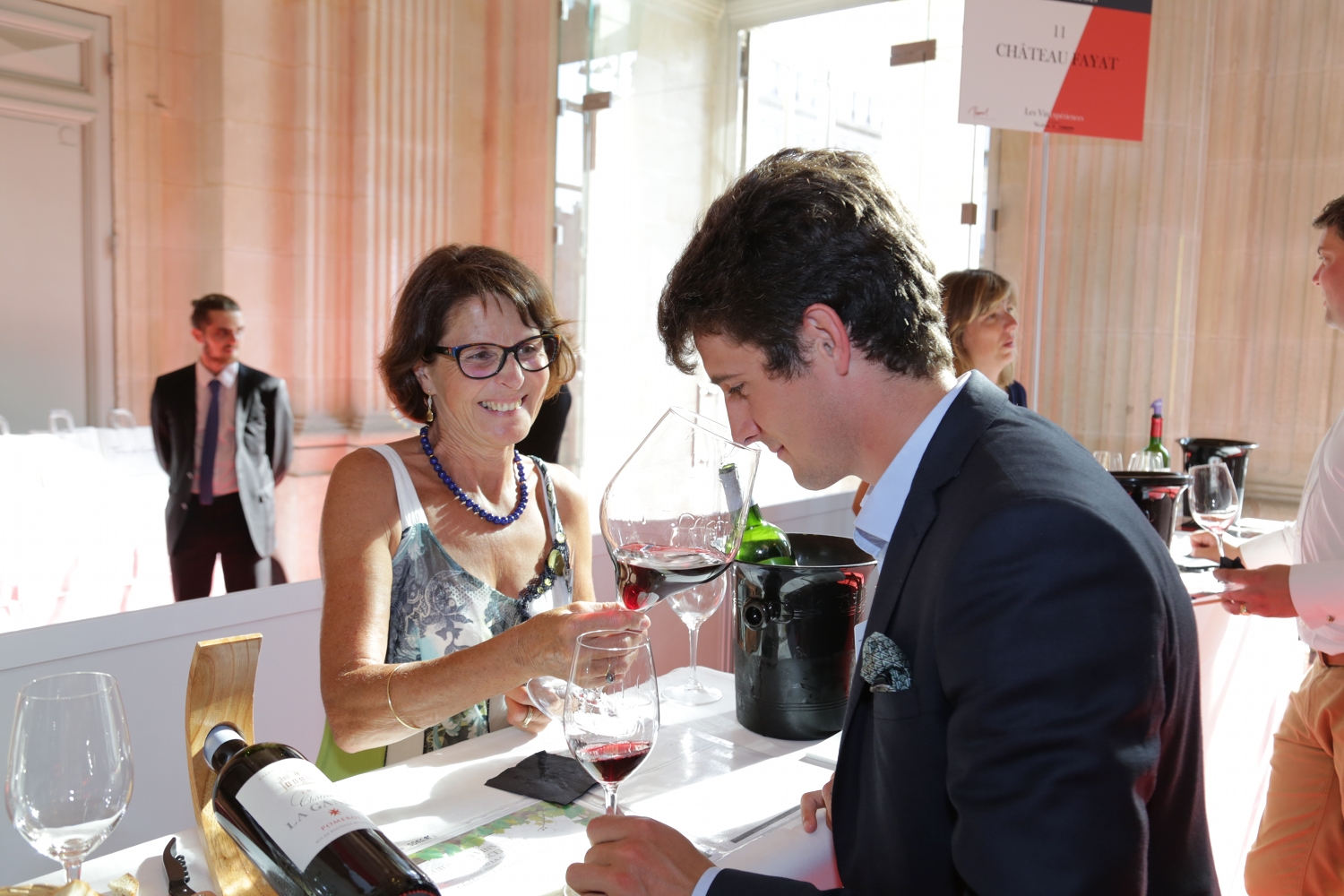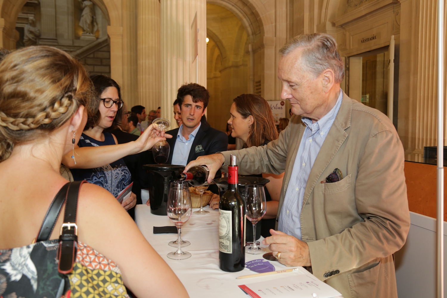 Les quelques centaines d’amateurs qui se pressaient hier soir (malgré la chaleur) dans l’enceinte majestueuse du Grand Théâtre de Bordeaux ne venaient pas pour assister à “La Traviata” ni au “Lac des Cygnes” : c’est dans le verre que le spectacle avait lieu, avec une grande dégustation de vins de Pomerol, deuxième Vinexpérience organisée par “Terre de Vins” en marge du salon Vinexpo. Trente propriétés étaient réunies avec, en guide de chef d’orchestre, Jean-Marie Garde, président de l’appellation et propriétaire de Clos René. “C’est très beau d’être dans le centre de Bordeaux et dans ce lieu emblématique”, s’enthousiasmait-il. “L’appellation Pomerol a depuis longtemps participé à Vinexpo, nous avions même, à une époque, un partenariat avec Sauternes, mais c’était bien sûr réservé aux professionnels. Avec “Terre de Vins”, nous avons pris l’habitude de venir à la rencontre du grand public, d’abord à Paris puis aujourd’hui à Bordeaux avec les Vinexpériences. C’est formidable de venir à la rencontre des amateurs, qui peuvent parfois penser que Pomerol est une appellation intimidante ou inaccessible – l’occasion leur est donnée de découvrir une large gamme de styles, de terroirs, de prix, tout en ayant toujours ce fil conducteur typiquement pomerolais, la rondeur, l’amabilité, ce profil de séducteur subtil qui fait notre réputation. C’est une belle opération reconquête auprès des amateurs bordelais et français, qui vont pouvoir se dire, qui sait, qu’il serait temps de réapprovisionner leur cave en Pomerol !”