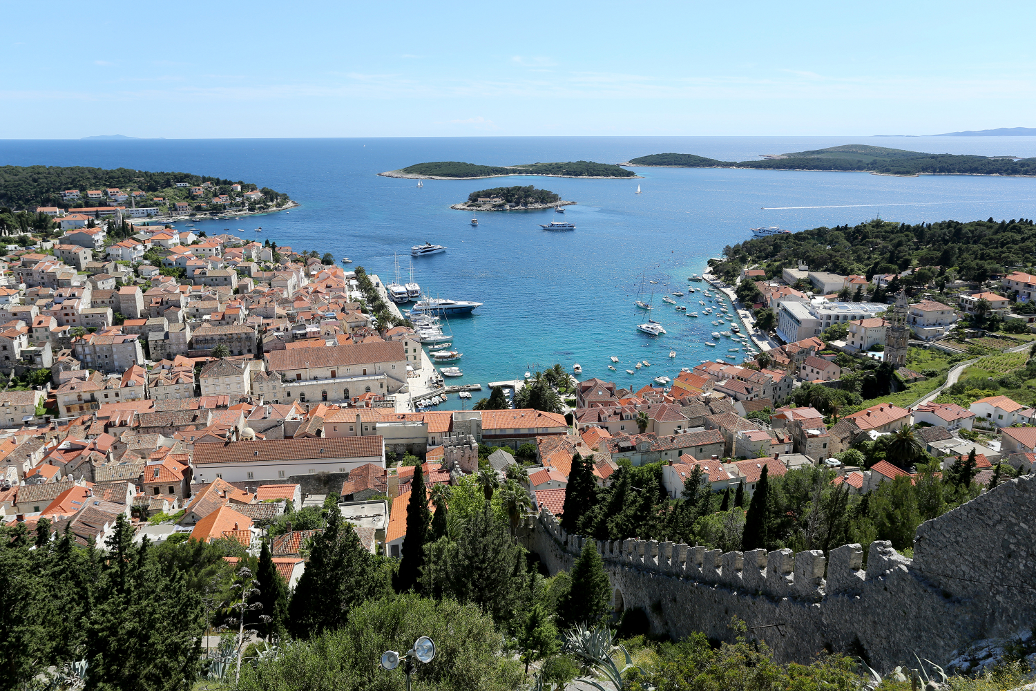 Hvar-ville est un village vénitien de carte postale, surplombé par une forteresse offrant une vue panoramique à couper le souffle. L’ascension, qui se fait par un dédale de ruelles escarpées, vaut un petit effort. La vue sur le port et la baie protégée par d’autres îlots vous récompensera. Dans une eau d’un bleu parfait se côtoient bateaux de pêcheurs et yachts de luxe. Car il faut garder en tête que Hvar est le Saint-Tropez croate: l’été, la jet-set internationale s’y donne rendez-vous pour faire la fête, en faisant l’une des stations balnéaires les plus fréquentées de la côte adriatique. La meilleure saison pour découvrir Hvar serait donc plutôt septembre ou octobre, quand la mer est encore chaude, les figues mûres et le raisin fraîchement récolté…