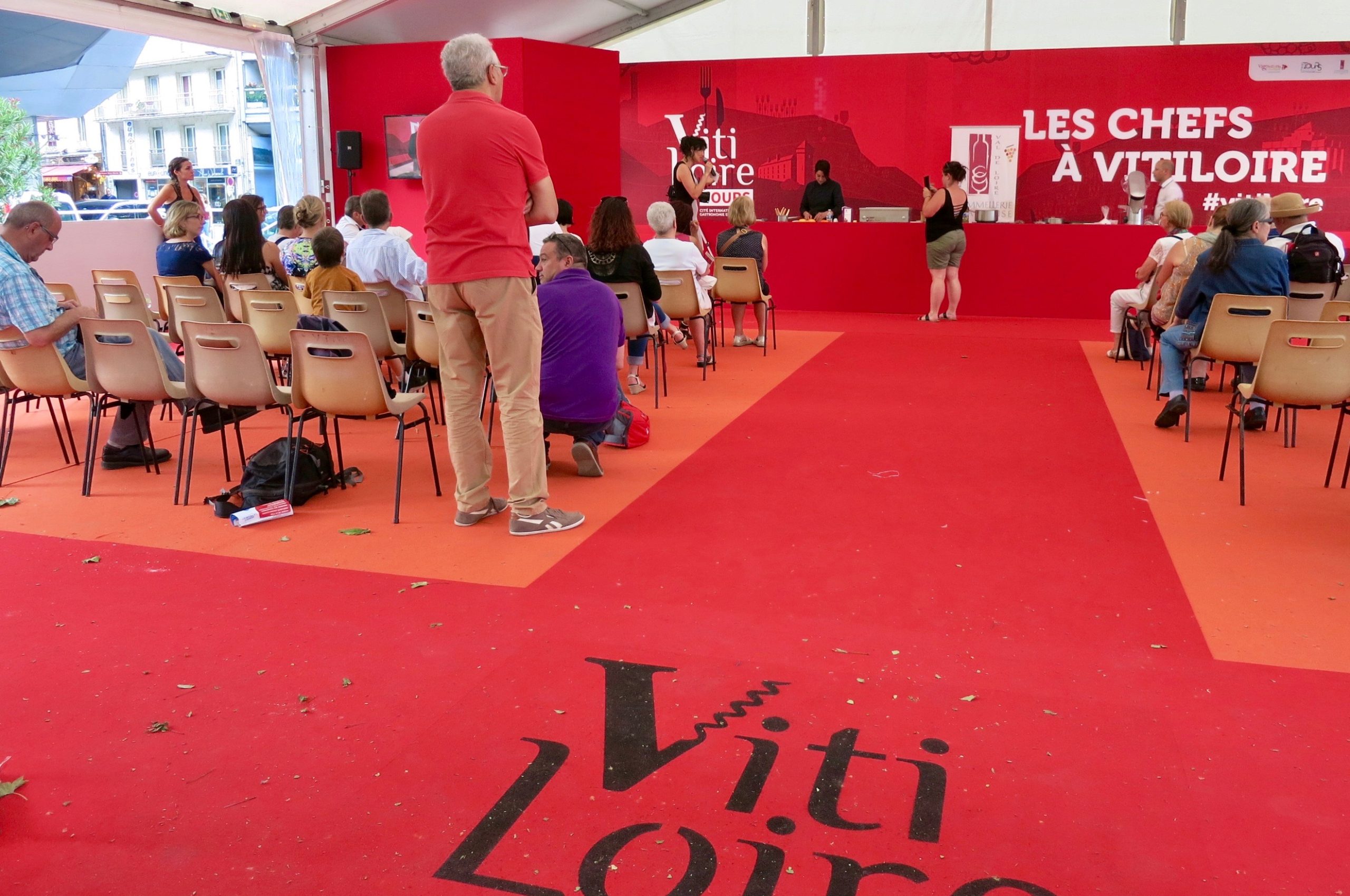 Vitiloire est une des plus grandes manifestations grand public autour du vin. Le temps d’un week-end, c’est l’occasion de déguster (et d’acheter les bouteilles) de 47 des 79 appellations contrôlées de la région, de découvrir Tours, cité internationale de la gastronomie, ses grandes avenues et ses petites rues, ses quais de Loire, sa guinguette et sa « plage », son patrimoine historique et culturel. Parmi les visiteurs, il y a les habitués qui viennent chaque année déguster le nouveau millésime à la vente, voir les vignerons qu’ils aiment et en découvrir de nouveaux pour remplir le coffre de leur voiture. Mais il y a aussi beaucoup de curieux, des gourmands qui viennent pour voir les chefs, comprendre leur technique et goûter leur savoureuses préparations. Cette année ils étaient dix à se succéder sous le chapiteau rouge des chefs, comme Maximilien Bridier de La Roche le Roy, une institution locale ou Christophe Hay de La Maison d’à côté à Montlivault (Loir & Cher). Il y a aussi un Village gourmand qui réunit des artisans de bouche qui montrent leurs fouaces, leurs fromages de Sainte Maure de Touraine ou bien sûr leurs rillons et rillettes.