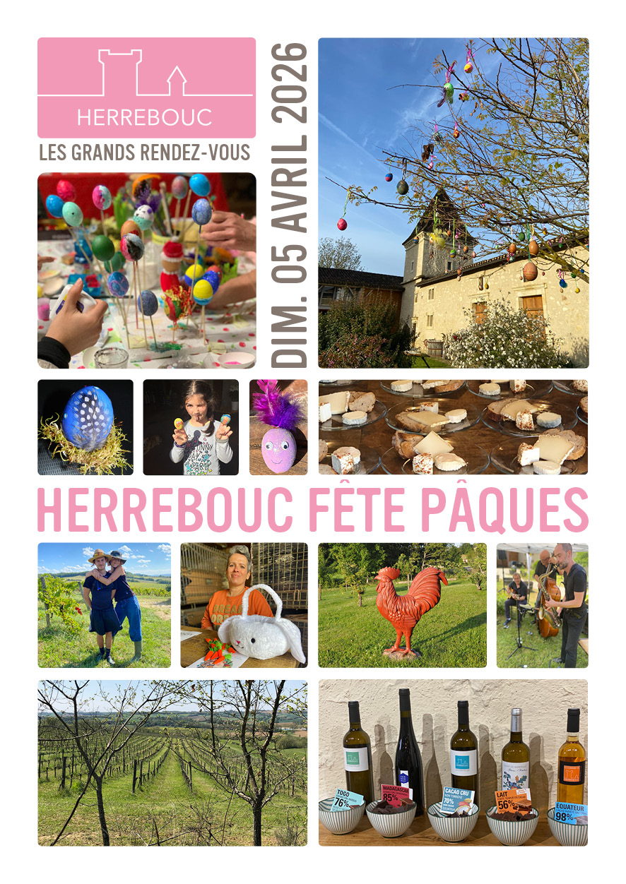 Premier grand événement de l'année au domaine, "Herrebouc fête Pâques" est l'occasion de découvrir le domaine autrement, au moment où le printemps partout renait ! Partez tout d'abord à l''aventure dans nos vignes, à la recherche des bouteilles cachées, savamment cachées par notre équipe. Puis revenez au domaine profiter du cadre enchanteur du château et de sa cour, le temps d'un brunch (sur réservation) puis d'un concert. Au chai, découvrez l'étonnante association vin et chocolat, au travers des grands crus éthiquable et d'une sélection de vins du domaine. Petits ou grands, pensez enfin à décorer votre oeuf pour l'osterbaum de Herrebouc !