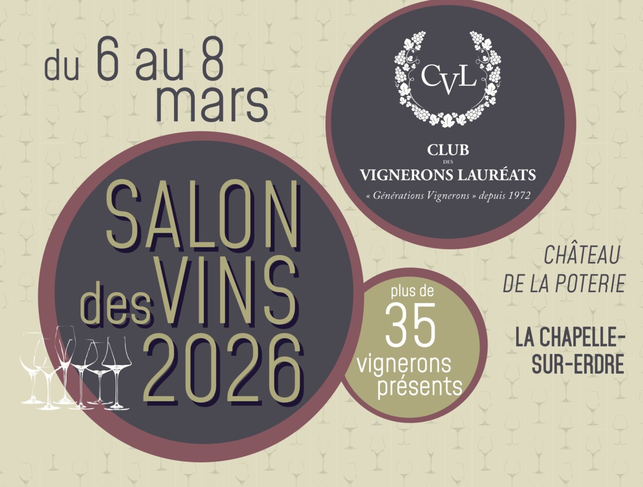 Le Club des Vignerons Lauréats organise le salon des vins de Nantes 2026. Vous dégusterez gratuitement et pourrez acheter à prix préférentiels les vins de 40 vignerons de toute la France : Languedoc-Roussillon, Cognac, Sud-Ouest, Provence, Corse, Champagne, Alsace, Jura, Savoie, Bourgogne, Val de Loire, Bordeaux, Côtes du Rhône … Horaires : Vendredi 6 mars 14h - 21h Samedi 7 mars 10h - 20h Dimanche 8 mars 10h - 17h Un lieu convivial et chaleureux : Château de la Poterie, 44240 - La Chapelle-sur-Erdre – Nantes Informations à retenir : Entrée GRATUITE, libre sur invitation 5€ le verre de dégustation Service de drive : vous faites vos achats et lorsque vous récupérerez votre voiture, nous changeons le tout dans votre coffre. Restauration sur place : assiettes de canard Les Délices d’Amélie, huîtres Grands Crus en Cotentin, coquilles Saint-Jacques snackées et Cam’Tarte Foodtruck Parking gratuit à proximité Pour en savoir plus : https://www.club-vignerons-laureats.com/salon-des-vins-nantes/ Inscrivez-vous ici : https://www.helloasso.com/associations/club-des-vignerons-laureats/evenements/salon-des-vins-nantes-2026-club-des-vignerons-laureats Le Club des Vignerons Lauréats est une association de vignerons créée en 1972 afin de renforcer et dynamiser la relation des vignerons avec les amateurs de leurs vins. Venir au plus près des consommateurs est un plaisir qui se transmet de générations en générations au sein des domaines membres du Club. Plusieurs salons sont organisés au cours de l’année et ceux de Printemps approchent !