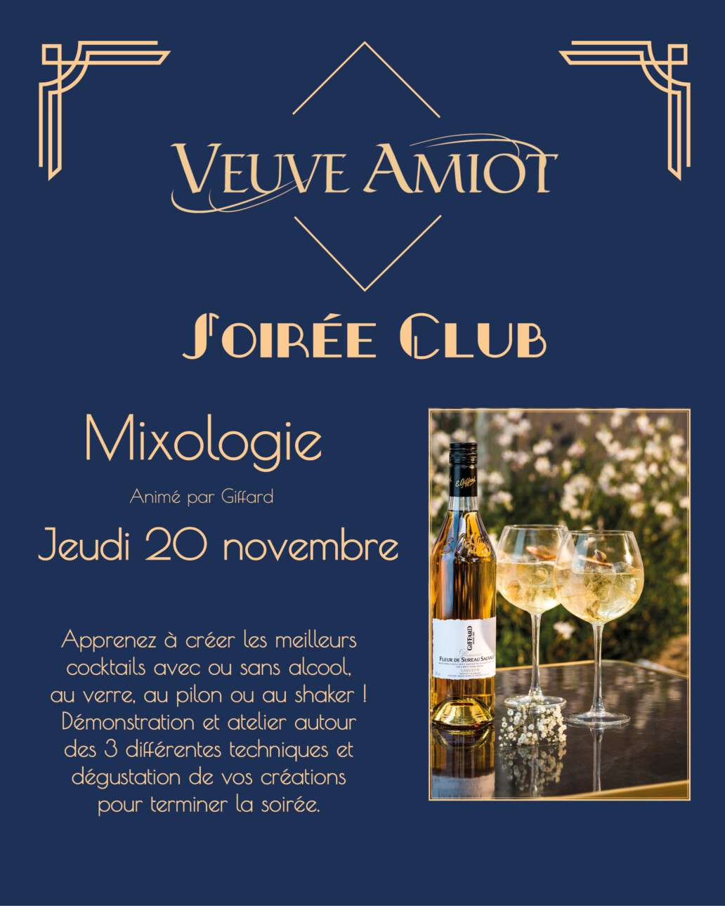 Margarita, cosmopolitan, spritz, mojito pétillant…avec ou sans alcool, apprenez à shaker pour reproduire des cocktails iconiques ou des créations plus originales. Au programme : - Démonstration des 3 techniques de mixologie - Atelier : à vous de jouer le.la barman ou barmaid ! - Dégustation de vos créations Un atelier d’1h30 animé par @Giffard, expert des liqueurs et sirops ✨ | 2 créneaux possibles : 18h ou 20h | Places limitées, réservez vite !