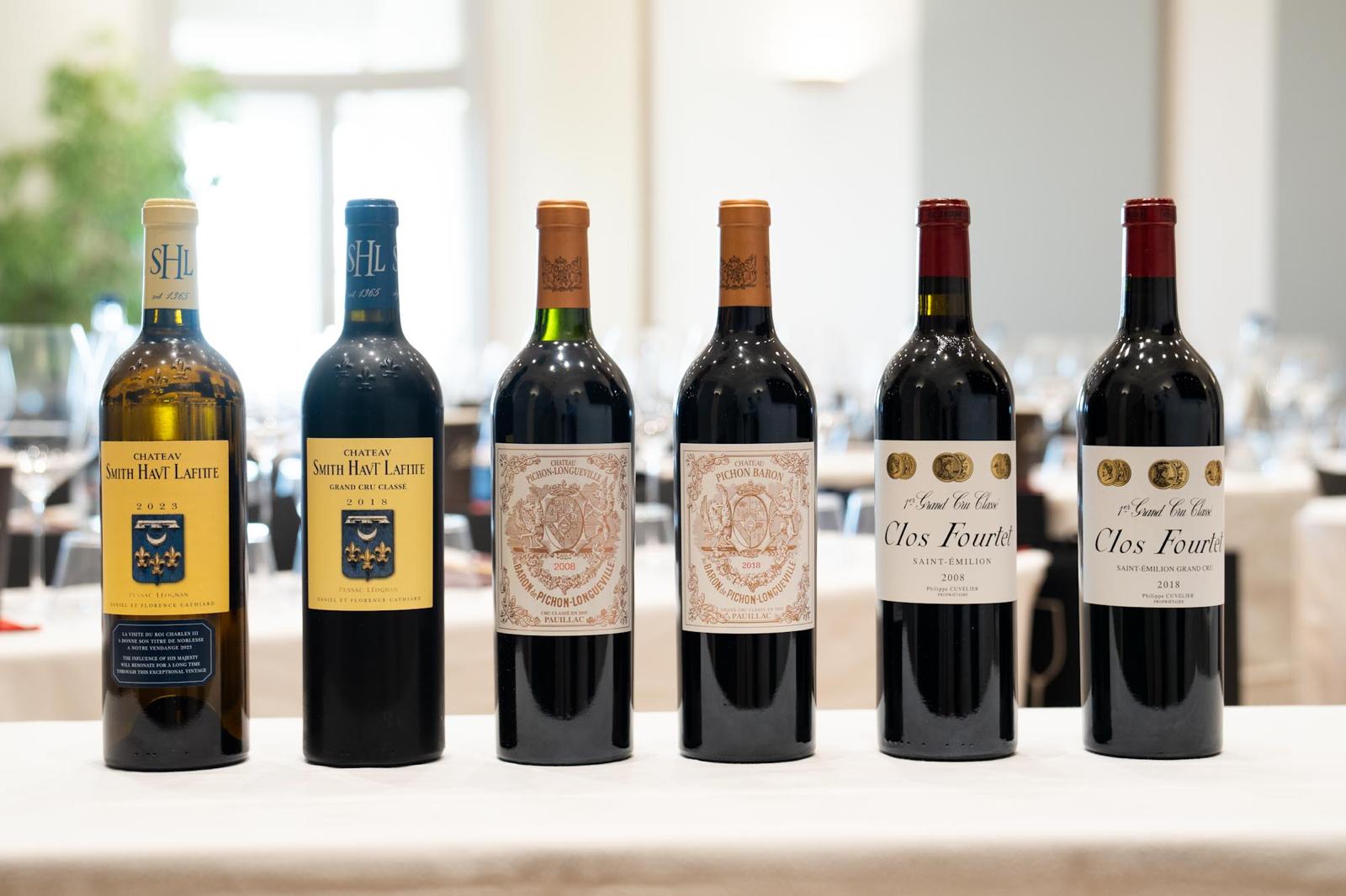*Pichon Baron 2008 et 2018, Clos Fourtet 2008 et 2018, Smith Haut Lafitte 2018 (rouge) et 2023 (blanc)