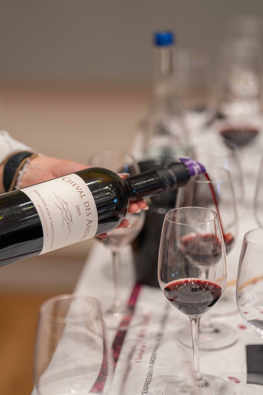 À Cheval des Andes au fil des échanges, se dessine l’identité singulière de ce projet né il y a plus de vingt-cinq ans de la rencontre entre le savoir-faire de Cheval Blanc à Saint-Émilion et les terroirs de Mendoza, avec deux vignobles complémentaires, Las Compuertas et Altamira, pensés pour apporter complexité et fraîcheur à un vin dont la ligne directrice reste claire. « Notre vision d’un grand vin, c’est la fraîcheur » avant que la dégustation ne déroule une lecture cohérente des millésimes récents, du 2018 ample et solaire, déjà solidement en place, au 2019 plus élancé et tendu, puis au 2020 précis et resserré, reflet d’un équilibre recherché dans des conditions climatiques exigeantes ; le 2021 se montre plus discret, presque en retenue, laissant parler la finesse plutôt que la puissance, tandis que le 2022, encore très jeune, referme la dégustation sur une impression de maîtrise et de promesse, comme une synthèse du chemin parcouru par Cheval des Andes, capable d’associer profondeur, lisibilité et fraîcheur sans jamais forcer le trait, fidèle à cette intuition fondatrice née, selon Gérald Gabillet, du moment où Pierre Lurton a reconnu « une part de Bordeaux à 12 000 kilomètres ».