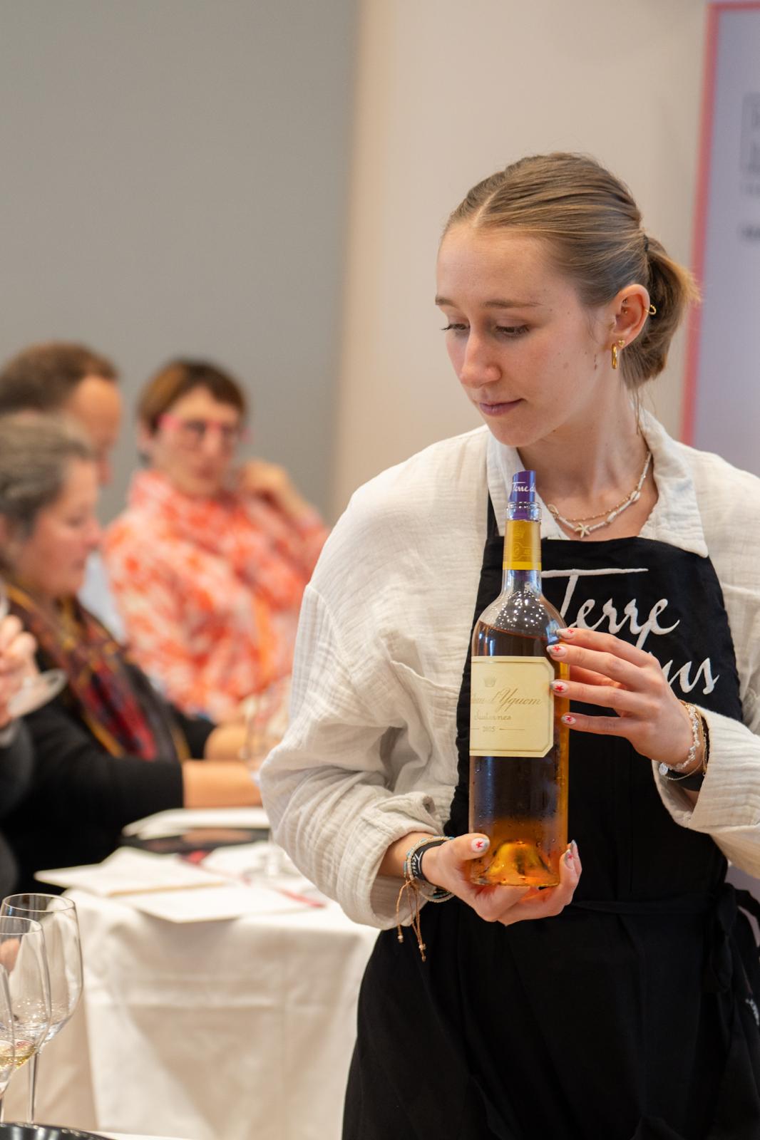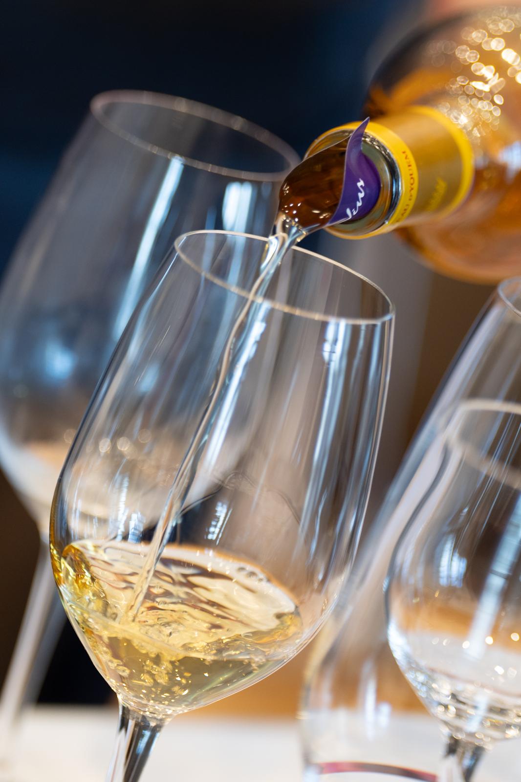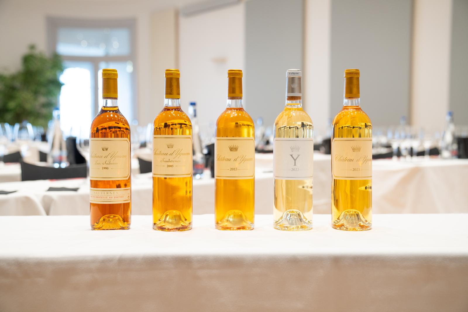 La dégustation d'anthologie a débuté par une surprise de taille : le millésime 2023 de la propriété, dégusté en avant-première mondiale puisque celui-ci sera présenté à la presse et mis en marché en début d'année prochaine. 2013, 2005 et 1990 ont prolongé ce moment enchanté, démontrant la magistrale aptitude d'Yquem à affronter les années avec une évolution remarquable racontant le temps qui passe au royaume du botrytis. « Goûter un vieux millésime d'Yquem est la plus belle façon de voyager dans le temps », appuie Lorenzo Pasquini, qui a également présenté, en conclusion, le millésime 2022 d'Y, le vin blanc sec de la propriété, qui n'est pas considéré comme un vin à part mais comme « une interprétation différente des mêmes raisins qui font la magie d'Yquem ».