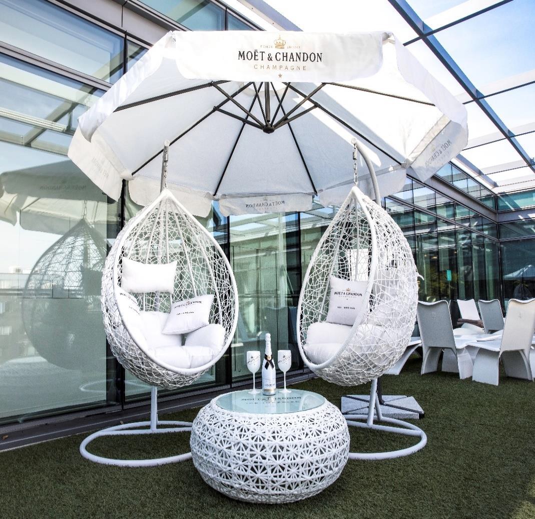 7 ans d’existence pour Moët Ice Imperial, la doyenne des cuvées de champagne conçues pour être bues avec des glaçons. Jusqu’à fin septembre, une dizaine d’établissements de Paris, Lyon, Bordeaux ou de cités balnéaires proposeront des espaces de dégustation «Terr’ice » tout en blanc, avec deux fauteuils suspendus et un parasol-brumisateur. Relax !