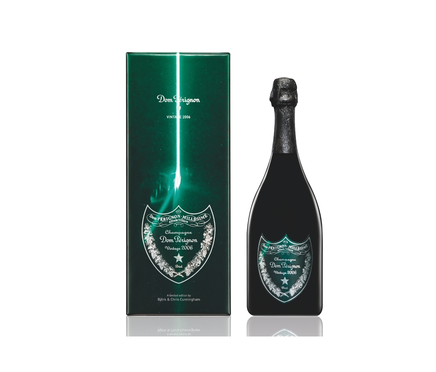 Après cinq millésimes successifs, voici le Dom Perignon 2006 proposé dans un coffret en série limitée signé par la musicienne islandaise Björk et le plasticien britannique Chris Cunningham (160 €). Pour le chef de caves Richard Geoffroy, une année solaire où la forte maturité des raisins donne des vins structurés et concentrés. Dom Perignon sort également son rosé en vintage 2004 dans ce coffret (290 €).